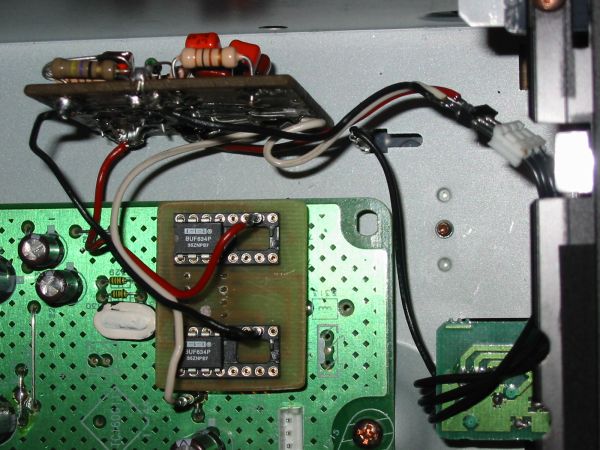 - w sekcji wzmacniacza słuchawkowego nie jest potrzebne wzmacnianie sygnału, zamiast opampa NJM4556 pracują bufory BurrBrown BUF634, na wyjsciu ktorych zamontowany jest genialny symulator akustyki: Linkwitz Headphone Filter. Usunalem tez z sekcji słuchawkowej tranzystory wyciszające.