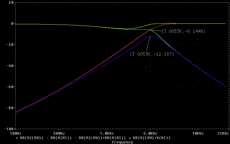 Częstotliwość podziału zwrotnicy ustaliłem na 3kHz, ze spadkiem 18dB/oct.